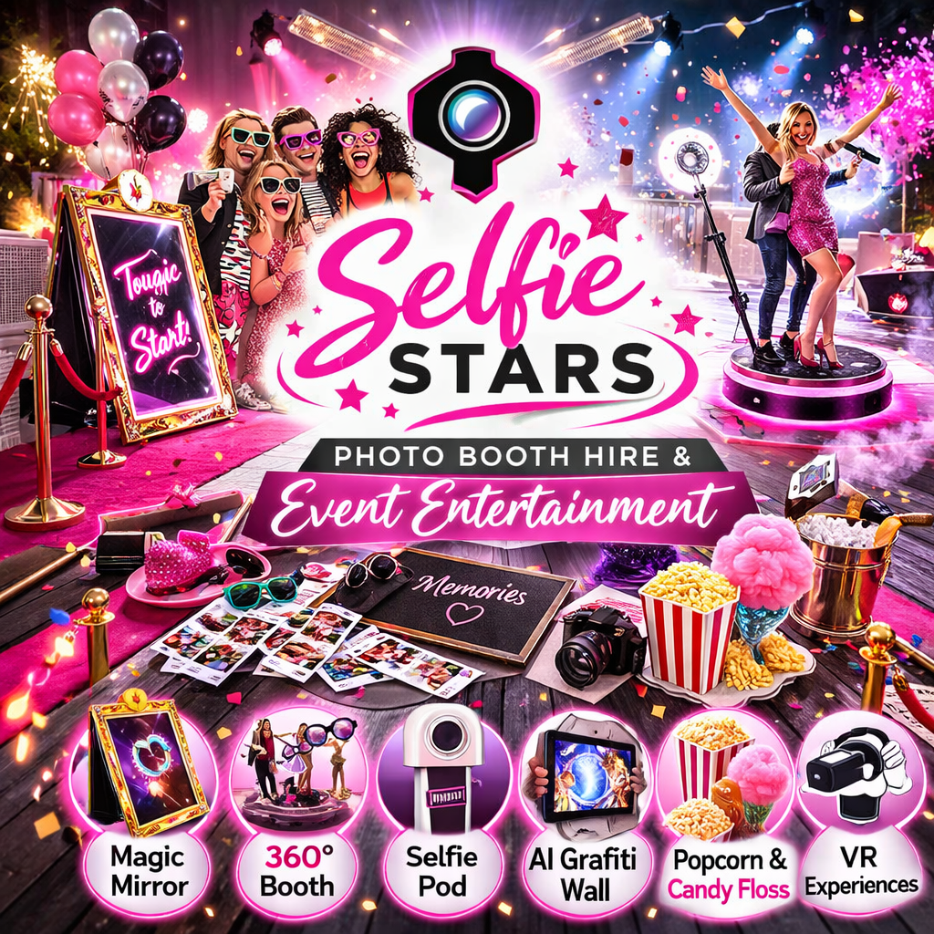 Selfie Stars is a leading provider of premium photo booth hire and interactive event entertainment, delivering unforgettable experiences for weddings, corporate events, parties, and special occasions across Essex, Hertfordshire, London, and surrounding areas. We specialise in modern, high-quality photo booth experiences designed to engage guests, capture memories, and create shareable moments that last long after the event. From elegant weddings to high-energy corporate functions, our range of cutting-edge entertainment options ensures there’s something for every type of event. 📸 Our Services Include: Magic Mirror Photo Booth Hire 360 Video Booth Experience Selfie Pod Photo Booths AI Digital Graffiti Wall (Interactive Drawing Experience) Instant Prints & Digital Sharing Custom Photo Templates & Branding VR Headset Experiences (Meta Quest 3) Popcorn & Candy Floss Machines Balloon Décor & Event Styling 🎉 Perfect For: Weddings & Engagement Parties Corporate Events & Brand Activations Birthday Parties & Celebrations School Proms & Graduations Exhibitions & Trade Shows Christmas Parties & Seasonal Events 🚀 Why Choose Selfie Stars? High-quality, modern equipment Fully attended and professionally managed setups Instant prints and social media sharing options Custom branding for corporate events Fun, engaging experiences for all ages Reliable, friendly service with full event support At Selfie Stars, we don’t just provide photo booths — we create immersive, interactive experiences that bring people together and make your event truly memorable. 👉 Book today to add that extra wow factor to your next event.